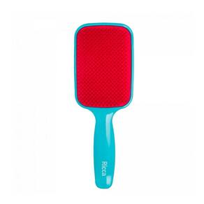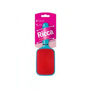 Ricca Flex Raquete Blue - Escova de cabelo. Ricca Flex Raquete penteia e desembaraça com facilidade, reduzindo consideravelmente a quebra dos fios. - A Escova de Cabelo Ricca Flex Raquete conta com cerdas flexíveis de dupla altura que desembaraçam os fios, secos ou molhados, com maior facilidade, diminuindo a quebra e desfazendo os nós. Conselho de Aplicação - Separe mechas pequenas e inicie desembaraçando o cabelo das pontas para a raiz. Nossos Experts Ensinam - Comece sempre desembaraçando as pontas, onde geralmente se concentram os nós. Quando as pontas estiverem desembaraçadas, penteie todo o comprimento do cabelo. Aposte em movimentos suaves para não danificar os fios e garantir sensação de conforto. - Cabelos penteados e desembaraçados com conforto e facilidade.