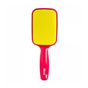 Ricca Flex Raquete Pink - Escova de cabelo. Ricca Flex Raquete penteia e desembaraça com facilidade, reduzindo consideravelmente a quebra dos fios. - A Escova de Cabelo Ricca Flex Raquete conta com cerdas flexíveis de dupla altura que desembaraçam os fios, secos ou molhados, com maior facilidade, diminuindo a quebra e desfazendo os nós. Conselho de Aplicação - Separe mechas pequenas e inicie desembaraçando o cabelo das pontas para a raiz. Nossos Experts Ensinam - Comece sempre desembaraçando as pontas, onde geralmente se concentram os nós. Quando as pontas estiverem desembaraçadas, penteie todo o comprimento do cabelo. Aposte em movimentos suaves para não danificar os fios e garantir sensação de conforto. - Cabelos penteados e desembaraçados com conforto e facilidade.