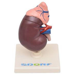 Modelo anatômico de rim em duas partes, confeccionado em PVC, evidencia as estruturas internas e funcionais bem com apresenta a glândula adrenal;O modelo SD-5051 apresenta as seguintes estruturas entre outras:* Margem Lateral; * Margem Medial; * Hilo Renal; * Córtex Renal; * Pirâmide Renal; * Coluna Renal;* Cálices Maiores; * Cálices Menores; * Pelve Renal; * Ureter; * Artéria Renal; * Veia Renal; * Cápsula Renal Superior; * Cápsula Renal Inferior; * Glândula Adrenal;&Ndash; Montado sob base plástica;Acompanha:01 Base plástica;01 Haste;01 Manual em português,01 Termo de garantia.Embalagem: Caixa de papelão.Informação adicionalPeso 0.425 kgDimensões 12 x 12 x 8 cm