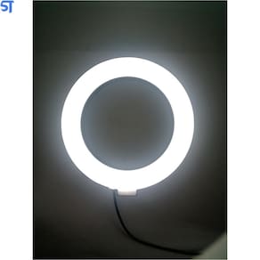 Descrição Do Produto Lâmpada Ring Light LED de mesa Com ajuste de até 3 cores diferentes e ajuste de brilho Potência 10W Alimentação via porta USB 5V Tamanho do ANEL LED: 20cm Tamanho do cabo: 200cm Possui tripé e suporte para celular Marca: Sobraltech
