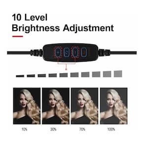 Ring Light 10 Polegadas 26cm Kit Completo Tripé e DimmerEstúdio de Fotografia iluminação 120 pcs LED Ring Light 1 Telefone Vídeo Fotografia Iluminação Regulável Lâmpada Anel + Tripé.É amplamente aplicado a luz foto ao ar livre, enchendo de luz dentro de casa, retrato, moda, arte do casamento, fotografia publicitária, a gravação de vídeo, etc.Tripé cor: Só preto Tripé retrátil Especificações técnicas:Anel de Luz: ledAnel de Luz Tamanho: 26x26 10 polegada cmPotência: 15 wTensão: dc 5 vAs Lâmpadas de led: 120 pcscct: 2700 K-5500 kUtilize tensão: 110 volts e 220 volts pode ser utilizadoItens Inclusos:1x LED Anel smd Luz de Preenchimento 26 cm x 26 cm 1x USB Plug1x Tripé: 2.1 m ou maior, conforme disponibilidade Marca: Wtx Imports Ean: 7894872592977