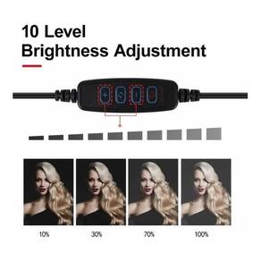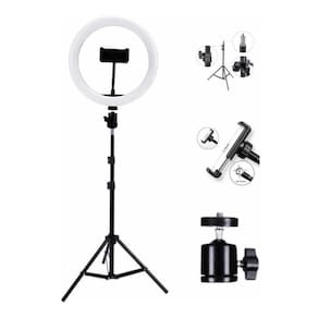 Ring Light 10 Polegadas 26cm Kit Completo Tripé e DimmerEstúdio de Fotografia iluminação 120 pcs LED Ring Light 1 Telefone Vídeo Fotografia Iluminação Regulável Lâmpada Anel + Tripé.É amplamente aplicado a luz foto ao ar livre, enchendo de luz dentro de casa, retrato, moda, arte do casamento, fotografia publicitária, a gravação de vídeo, etc.Tripé cor: Só preto Tripé retrátil Especificações técnicas:Anel de Luz: ledAnel de Luz Tamanho: 26x26 10 polegada cmPotência: 15 wTensão: dc 5 vAs Lâmpadas de led: 120 pcscct: 2700 K-5500 kUtilize tensão: 110 volts e 220 volts pode ser utilizadoItens Inclusos:1x LED Anel smd Luz de Preenchimento 26 cm x 26 cm 1x USB Plug1x Tripé: 2.1 m ou maior, conforme disponibilidade