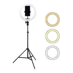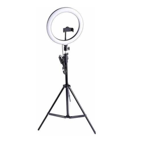 1-tripé com altura máxima 2m 1-aro circular Ring light 30cm 1- haste flexível 1- fio USB 1- controle de tom da luz integrada ao próprio fio USB