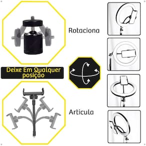 Características: - Tripé ajustável - 3 Tipos de cores: Branco frio, branco neutro e branco quente; - Entrada do produto USB é compatível com fonte de celular.