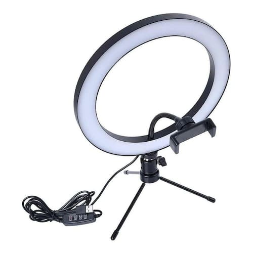 Ring light 26 cm + mini tripé foto video youtuber Acompanha 1-ring light 26cm 1-adaptador de celular 1-mini tripé 1- controle de intensidade de iluminação