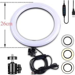 Agora seus vídeos vão ficar profissionais com este incrível ring light 26cm,ele vai pronto para uso e fácil utilização.Com 3 tipos de cores sua iluminação estará completa.