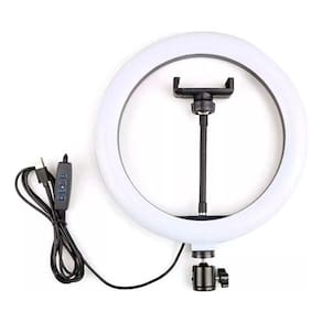 Conteúdo da embalagem: 01 Iluminador led Ring light Bicolor GRANDE de 10 polegadas 01 Fonte de alimentação entrada bivolt 01 Suporte para Smartphone