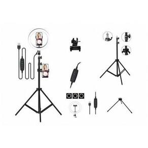 Conteúdo da embalagem: - 01 Ring Light 10'' com Tripé e Suporte - 01 Pino adaptador rosca 1/4 - 01 Mini ballhead - 01 Suporte para câmera com largura de 5 cm a 7,5 cm - 01 Suporte para celular com largura 6 cm a 9 cm - 01 Tripé 2 Metros Aberto 68 cm Fechado