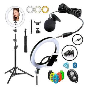 Eleve suas gravações e lives a um novo patamar de profissionalismo Descubra o kit definitivo que transforma seu conteúdo: Iluminação Impecável: Ring Light de 26cm com 10 níveis de intensidade e 3 tonalidades quente, fria, neutra para a luz perfeita em qualquer situação. Estabilidade : Tripé robusto de 2,10m que garante a altura e o ângulo ideais, com encaixe articulado para ajustes precisos. Liberdade Criativa: Controle Bluetooth para selfies e gravações sem precisar tocar no seu smartphone. Áudio Claro: Microfone de lapela P3 de alta sensibilidade para capturar cada palavra com clareza. Versatilidade Total: Ideal para criadores de conteúdo, maquiadores, fotógrafos e estética. O que você recebe: 1 Ring Light LED 26cm 1 Suporte para Celular 1 Tripé 2,10m 1 Controle Bluetooth 1 Microfone de Lapela P3 Especificações Técnicas: Ring Light: Alimentação USB, Bivolt, Temperatura de cor 3500k-5500k, Dimensões 26x26x1,5cm. Tripé: Altura ajustável até 2,10m, material em ferro, cabo de 1,5m com controle integrado. Controle Bluetooth: Alcance de até 5m, compatível com Android 4.22+ e iOS 6.0+ . Microfone de Lapela: Cabo de 1,5m, alta sensibilidade e clipe giratório. Não espere mais para profissionalizar seu conteúdo Adquira agora seu kit completo e veja a diferença Marca: Não Informado Ean: 79054434105121