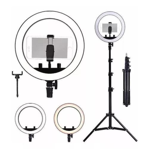Pode ser escurecido Luz Do Anel De acordo com a situação de compra, o produto pode usar 1 ou 2 ou 4 telefones celulares para transmissão de vídeo ao mesmo tempo, totalmente demonstrando seus talentos, aperfeiçoar a sua vida Luz de preenchimento e beauty rosto, Fazer face e a beleza dos olhos, Super brilhante em night, Multipel Temperatura de cor: Três cores pode ser ajustado branco, amarelo quente e branco quente Anel de luz faixa ajustável: 1%-100%. Luz extra para a maquiagem perfeita, tirar fotos, fazer vídeos, livros de leitura e streaming.