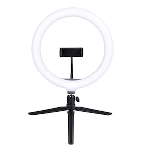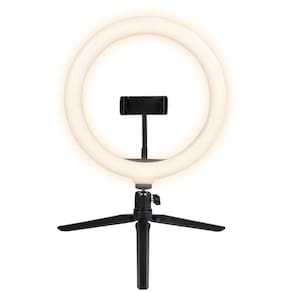 RING LIGHT DE MESA 26CM COM TRIPÉ DE 20CM E SUPORTE PARA CELULAR - RLM26 Diâmetro do anel: 26cm Suporte flexível para celular até 8Equot;Equot; Altura máxima do tripé: 20 cm Potência: 12W Giro de 360° da Ring Light Cabo USB de 1,5 metros Controle de temperatura da luz: fria, natural e quente Controle de intensidade da luz Temperatura da luz: 2900K - 5700K Ean: 7908020920113