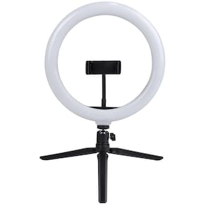 RING LIGHT DE MESA 26CM COM TRIPÉ DE 20CM E SUPORTE PARA CELULAR - RLM26 Diâmetro do anel: 26cm Suporte flexível para celular até 8Equot;Equot; Altura máxima do tripé: 20 cm Potência: 12W Giro de 360° da Ring Light Cabo USB de 1,5 metros Controle de temperatura da luz: fria, natural e quente Controle de intensidade da luz Temperatura da luz: 2900K - 5700K Ean: 7908020920113