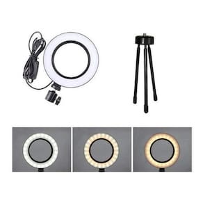 Iluminador Ring Light 6 Polegadas Não acompanha suporte para celular Este modelo de Ring Light proporciona uma iluminação perfeita para fotografar ou gravar seus vídeos. É um modelo com luzes quentes e frias ideal para aquele toque perfeito na sua iluminação. Ele possui o Led na cor branca fria e o led amarelo quente , podendo ser controlado pelo controle que acompanha no cabo. Suas fotos e videos ficarão com o efeito perfeito Este modelo é o preferido dos maquiadores, barbeiros e influenciadores digitais. Seu corpo em alumínio é muito mais resistente e portátil, podendo ser transportado facilmente. Especificações: - Peso: 260g - Material: Alumínio - Dimensões: 3cm x 21cm x 16cm - Número de leds: 72 SMD2835 - Tamanho da circunferência: 6 polegadas cerca de 16 cm - Cores do led: Branco frio e branco quente - Potência: 7 a 14W - LM: 24lm a 26lm - Temperatura das cores: 3000 a 6500K - Voltagem: 5V - Conexões: USB - Controle: Sim Itens inclusos: 1 Ring Light 6 Polegadas 1 Tripé TAGS Luz Ring Light 6 Polegadas 72 Led + Tripé Ring Light Led iluminado Com Tripé Iluminador Ring Light 6 Pelegadas Iluminador Ring Ligth Anel Luz Iluminador Led Ring Light Com Tripé Luz Iluminador Ring Light 6 Polegadas Marca: Wcan