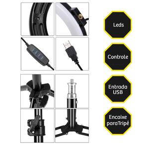 Características: - Tripé ajustável - 3 Tipos de cores: Branco frio, branco neutro e branco quente; - Entrada do produto USB é compatível com fonte de celular.