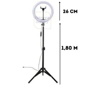 Especificações: Diâmetro do ring light: 26 cm Alimentação: 5v USB Comprimento aproximado do cabo: 1,70m Comprimento aproximado do tripé: 1,80m Temperatura de cor: 3200k - 5500K ajustável 3 Cores disponíveis: Branco Frio, Branco Neutro e Branco quente.