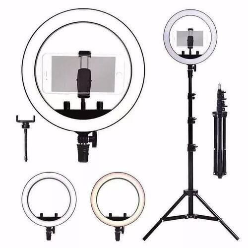 Ring Light Iluminador 26Cm / 10 Polegadas + Tripé 1.75M Ring light para gravações e selfies. Suas fotos e vídeos com qualidade profissional A ring light 26 cm possuí controle integrado ao próprio cabo usb que regula os tons de cores da luz são 3 tons. 1 branco-quente, 1 branco- frio e 1 neutro . A ring light possuí uma haste flexível suporte de celular ao meio do led para prender o celular, proporcionando conforto para bater suas fotos e vídeo tanto verticalmente, horizontalmente, pra cima ou para baixo, por ser flexível você pode deixar na posição desejada Além de um excelente ring você também vai ter um tripé profissional com altura máxima de 1.75m e altura mínima de 1,45m Total qualidade e profissionalidade em seus vídeos e fotos. Atenção A ring light segue acompanha de: 1- tripé com altura máxima 1,75m e mínima 1,45m 1- aro circular ring light 26cm 1- haste flexível 1- fio usb 1- controle de tom da luz integrada ao próprio fio usb Nota A ring light segue acompanhada de suporte de celular haste flexível a ring light é ligada por corrente direta precisa conectar a tomada para ligar a ring light possui cabo usb e controle de tom integrado ao próprio cabo a ring light não possui plug a fonte que liga na tomada tem que ter entrada usb sendo de 5w/10w acima de 2.1a não usem fontes da samsung ou / pois não tem as especificações adequadas prejudicando o bom funcionamento e duração da ring Marca: Não Informado Ean: 7899192939433