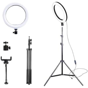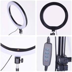 Iluminador Ring Light de 26 centímetros, desenvolvido para maquiadores, fotógrafos, cinegrafistas e etc, que buscam uma ótima maneira de iluminar com perfeição. Iluminação do produto possui dois botões: 1 botão – aumenta e diminui intensidade da luz; 2 botão – altera a cor da luz para branco frio, neutro ou quente. A alimentação do iluminador é através de cabo USB (não acompanha adaptador de tomada e não possui bateria interna recarregável), você pode utilizar um carregador usb v8 adaptador de tomada de celular para ligar ou conectar no USB do computador ou outro equipamento que forneça 5v USB. O cabo USB deverá estar sempre ligado para funcionar. Dimensões: 26cm externo Dimensões: 20cm interno AVISO: entrada do produto USB é compatível com fonte de celular (FONTE NAO INCLUSA) NÃO ACOMPANHA CABO CARREGADOR. Conteúdo da Embalagem: 1x Ring Light 26cm 1x Adaptador de celular 1x Adaptador 1x Tripe 2.0m.