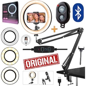 Ring light iluminador profissional luz led suporte mesa braço articulado garra makeup celular gravação vídeo blogueiro