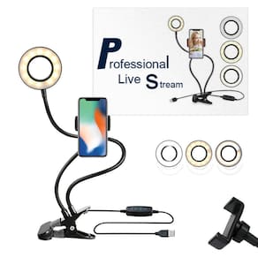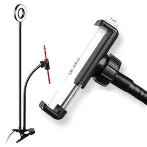Iluminador Ring Light Suporte Live Stream Celular Controle cor preto Muito Procurado por maquiadores, Barbeiros, fotÃgrafos, Youtubers e etc, este modelo de Ring Light vai te proporcionar a iluminação perfeita para fotografar ou gravar seus trabalhos para rede social ou ata mesmo se o conteúdo for enviado para seu canal do youtube por exemplo. Excelente para criar videos , seja com smartphone ou computador.   Possui configura de matiz e brilho para obter a iluminaÃÃo certa. Basta escolher entre 3 modos de luz e 9 niveis de brilho para os seus usos preferidos - maquiagem, flat lay, fotos de selfie, vlogging de cenÃrios escuros etc. Controles de fÃcil manuseio no cabo para ligar / desligar ou mudar para o modo de iluminaÃÃo que vocà preferir. Pode ser como luminÃria de mesa.  Fotos meramente ilustrativas.  Especificaãães: Modelo: Professional Live Stream Peso: 480g 3 modos de luz branca, amarela e mista e 9 nÃveis de brilho Potencia: 12w Material: AÃo e plástico Abs Cabo usb aproximadamente: 1,20m Altura máxima aproximada: haste ring light 61,5 cm e haste smartphone 34,5 cm Diâmetro aproximado do ring light: 8,5 cm Compatibilidade: Largura máxima aproximada do suporte telefone à de 8,6 cm Conexões: Usb 5V  Itens inclusos: 1 Iluminador ring light com suporte articulado de mesa Live Stream para celular smartphone com controle 1 Suporte para o celular smartphone Marca: W & K IMPORT