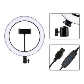 Ring Light LED 10 com Suporte USB Luz Foto e Vídeo Ring Light LED 10 polegadas com Suporte USB é a solução ideal para quem busca qualidade e praticidade na iluminação de fotos e vídeos. Com design moderno e funcional, este aro de luz proporciona iluminação suave, uniforme e sem sombras, realçando ângulos e detalhes com aparência profissional. Seja para gravações, transmissões , chamadas de vídeo ou produção de conteúdo para redes sociais, ele garante resultados consistentes e de alto padrão. Com tamanho de 10 polegadas e 240 LEDs de alta eficiência, o Ring Light oferece três modos de iluminação - Branco Quente, Branco Frio e Luz Neutra - permitindo ajustar a temperatura de cor entre 3200K e 5500K conforme o ambiente e o efeito desejado. A intensidade do brilho pode ser controlada diretamente no cabo, facilitando ajustes rápidos durante o uso. O suporte resistente e flexível possibilita ajustar altura e ângulo do aro de luz para a posição ideal, garantindo conforto e precisão na iluminação. A alimentação via USB torna o uso versátil, podendo ser conectado a computadores, notebooks, power banks ou adaptadores de tomada USB, sem necessidade de tomadas específicas. Fabricado em ABS de alta durabilidade e componentes elétricos de qualidade, o modelo MJ260 é bivolt e possui potência de 10W, entregando até 800 lúmens de luminosidade. Suas dimensões aproximadas são 26 cm de altura, 26 cm de diâmetro e 2,6 cm de espessura, com estrutura na cor preta. O produto é leve, portátil e fácil de transportar, ideal para uso doméstico ou profissional. Especificações Técnicas - Modelo: Ring Light MJ260 - Material: ABS e componentes elétricos - Dimensões aproximadas: 26 cm altura x 26 cm diâmetro x 2,6 cm espessura - Alimentação: USB - Potência: 10W - Lúmens: 800L - Temperatura de cor: 3200K a 5500K - Modos de iluminação: Branco Quente, Branco Frio e Neutro - LEDs: 240 unidades - Tensão: 5V - Bivolt - Cor da estrutura: Preto - Sem tripé apenas o aro Itens Inclusos - 01 Aro de Ring Light LED 10 polegadas com suporte USB Este Ring Light LED é indicado para criadores de conteúdo, maquiadores, fotógrafos, streamers e qualquer pessoa que precise de iluminação uniforme e ajustável. Sua versatilidade e facilidade de uso tornam o equipamento uma excelente escolha para quem busca melhorar a qualidade visual de suas produções sem complicações.