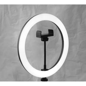 Faça challenges de maquiagem, grave vídeos para Youtube ou TikTok, e tire as melhores selfies com a nova ring da G-light. Nosso kit é composto por uma ring light com dimmer, um tripé de 19cm, um suporte universal para celular, e um adaptador para tripé. Para usar é muito fácil, basta conectá-la a uma entrada USB, apertar o botão liga/desliga e selecionar a cor da luz desejada. Monte já o seu kit youtuber com a nossa ring light