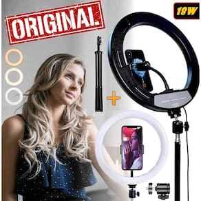 Ring light led anel iluminador hinglight profissional completo 26cm maquiagem foto selfie suporte celular + tripé 2,10m Kit youtuber a com eletrônica. Kit iluminador ring light + tripé 2,10m profissional. Recomendado para pessoas exigentes Kit profissional,completo,de qualidade e com eletrônica.São itens de qualidade para melhor qualidade de seus vídeos e fotos. Com este modelo você consegue usar o celular tanto na vertical quanto na horizontal O kit contém: 1 tripé de até 2,10m de alcance para o ring light 1 anel ring light de led 26cm 1 encaixe articulado 1 suporte de celular para o ring light Agora seus vídeos e fotos vão ficar profissionais com este incrível ring light 26cm,acompanhado do suporte para celular,ele vai pronto para uso e fácil utilização.Com 3 tipos de cores sua iluminação estará completa. Iluminador ring light de 26 centímetros, desenvolvido para maquiadores, fotógrafos, cinegrafistas e etc, que buscam uma ótima maneira de iluminar com perfeição. Ring light led é um iluminador com ajuste de até 10 níveis de intensidade de luz, 03 tonalidades de cor, quente, fria e mesclada quente e fria ao mesmo tempo , alimentado através de um cabo usb, devendo estar sempre conectado a uma fonte de energia para acender. A base composta por um tripé, um encaixe articulado, o que possibilita fácil ajuste de altura e do ângulo que deseja posicionar sua luz. Todas as peças são encaixadas através de rosca. Aviso: entrada usb do produto é compatível com fonte/carregador de celular Características: - alimentação: usb - voltagem: bivolt - tipos de luz: quente, fria e mesclada. - temperatura da cor: 3500k / 6500k - dimensões aproximadas do led axlxp : 26x26x1,5cm - altura aproximada do tripé com encaixe articulado: 15cm - material do tripé: ferro - tamanho aproximado do cabo: 1,5m - cabo com controle de liga/desliga, tipo de cor e intensidade de luz. Informações técnicas: - 10 níveis de intensidade de luz - 03 tipos de tonalidade de luz quente, fria e mesclada - suporte articulado - tripé com ajuste de altura Melhor kit custo benefício.