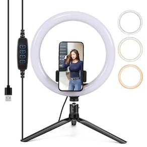 Ring Light Led Iluminador 26cm 10 Polegadas com Suporte para Celular Luz 10 Níveis de Brilho + Tripé de Mesa Ring Light Led Iluminador 26cm 10 Polegadas com Suporte para Celular Luz 10 níveis de brilho + Tripé de Mesa
