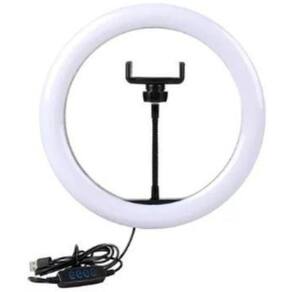 Ring Light Led Iluminador 26cm Completo 1,8m Tripé DETALHES: 01 Tripé com altura máxima de 1,80m fechado 0,60cm , podendo ser regulado na altura desejada baseado nas duas alturas. Conectores em nylon e sistema de rosca. Especificações Ring Light 26 cm de circunferência; Controlador de intensidade; Controlador de temperatura de cor Amarelo: 3000K, Branco Neutro: 4000K, Branco Frio: 6500K Possui botão para controle de intensidade e cor. Ideal para retratos, gravações, vídeos e maquiagem. Vendemos tripé com holofote. Temos suportes fundos infinitos e tecidos. O suporte de celular é compatível para celulares com até 8,5 cm de largura. Somos fabricantes há 20 anos. de fábrica. Marca: Não Informado Ean: 7893313920799