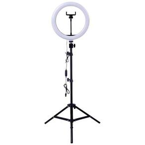 Ring Light Led Iluminador 26cm Completo + Tripé 2.1m Ring Light Led Tomate Completo Iluminador Portátil 26cm Tripé 360º Para mudar iluminação o produto é acompanhado com botões que ajusta o tipo de iluminação e a intensidade do brilho. CARACTÉRISTICAS: - Novo estúdio de luz modelo anel de preenchimento. É aplicado em foto ao ar livre, serve para iluminar a casa, retrato, moda, arte de casamento, gravação de vídeo, etc. ring Light Portente de 120 LEDS e Longa vida útil de mais de 50000hrs. - O Anel-em forma de luz vai fazer os olhos mais brilhantes, o que faz com que o retrato fique mais perfeito - Com tripé reforçado com rotação 360º grau a selfie ou vídeo, pode ser feita em qualquer ângulo. - Perfeitos para Youtubers e gravação de vlogs. ESPECIFICAÇÕES: Cor: Preto Diâmetro externo: 26 cm / Diâmetro interno: 20cm Potência: 25 MAX Voltagem: 110V-220V USB: Cabo de alimentação comprimento 200 centímetros Material: liga de alumínio/ABS Fonte de luz: LED SMD Lâmpadas de LED: 120 pcs Forma: Anel ITENS INCLUSO: 1- Ring Light 26cm / 10 polegadas Toamate 1- Adaptador de celular pode ser na vertical ou horizontal 1- Adaptador Ball Head 1- Tripé Reforçado 0,65 - 2,1m Marca: Não Informado Ean: 7892021101421