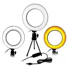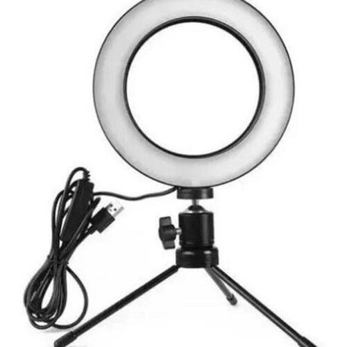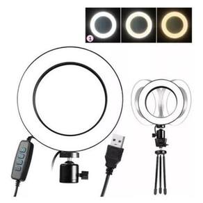 Ring light mesa 16cm +tripé iluminador youtuber maquiagem 6p Voltagem: bilvot Cor da estrutura: unico Aviso: entrada do produto usb é compatível com fonte de celular (fonte nao inclusa) Iluminador de led com tripe ring light usb 16cm 3500k 5500k Iluminador ring light de 16 centímetros (6,5 polegadas), desenvolvido para maquiadores, fotógrafos, cinegrafistas e etc, que buscam uma ótima maneira de iluminar com perfeição. Você pode ajustar o ângulo da iluminação por possuir um suporte articulado. É possível controlar as diferentes temperaturas de cores através do controle de ajuste que vai de 3500k à 5500k. Na frente dos leds tem um filtro difusor para suavizar a luz espalhando a luz com maior uniformidade. A alimentação do iluminador é através de cabo usb (não acompanha adaptador de tomada e não possui bateria interna recarregável), você pode utilizar um adaptador de tomada de celular para ligar ou conectar no usb do computador ou outro equipamento que forneça 5v usb. O cabo usb deverá estar sempre ligado para funcionar. O encaixe do ring ligth é através de encaixe padrão de tripés de rosca. O mini tripé também serve para utilizar em outros equipamentos de até 1kg de peso, como projetores, celulares e etc. É recomendado e extremamente eficaz para a macro fotografia, fotografia médica, odontológica, científica, hobby e para a iluminação/fotografia de produções de maquiadores. Fácil de usar, durável e de pouco peso, facilitando o transporte. Especificações: Diâmetro : 16 cm Alimentação: 5v usb Comprimento aproximado do cabo: 2,0m Temperatura de cor: 3500k - 5500k ajustável Ângulo regulável: sim Potência: 15w