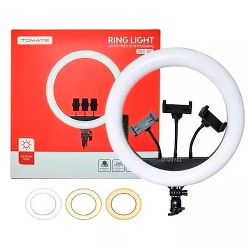 Ring Light Profissional 18 com Tripé Tomate MLG-089 Garanta uma produção com acabamento profissional sem abrir mão da praticidade. O Ring Light 18 da Tomate entrega alto desempenho em iluminação com excelente custo-benefício, sendo a escolha certa para quem busca melhorar a qualidade de vídeos, fotos, lives ou tutoriais. Com visual moderno e kit completo, ele valoriza cada detalhe da sua imagem, aumentando o impacto do seu conteúdo com mais nitidez, brilho e fidelidade de cor. Um investimento inteligente para quem leva a criação de conteúdo a sério. Diâmetro do aro: 18 polegadas 448 LEDs bicolores com ajuste de temperatura entre 3200K quente e 5500K fria Potência real de 55W Índice de reprodução de cor CRI : 95 Fluxo luminoso: aproximadamente 4400 lúmens Tripé com regulagem de altura até 2,1 metros Três suportes para celular com articulação Fonte de alimentação bivolt com saída DC 12V Entrada USB para carregar dispositivos durante o uso Controle remoto incluso para ajustes de luz Bolsa de transporte para facilitar o armazenamento e deslocamento Peso aproximado: 1,7 kg Transforme seu conteúdo com iluminação de verdade. Adicione ao carrinho agora e surpreenda no resultado. Marca: Não Informado