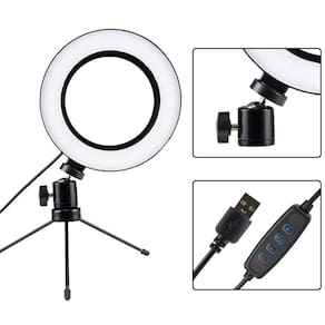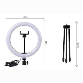 Ring Light Iluminador de LED 8 polegadas, é indicado para profissionais no ramo da beleza, como maquiadores e cabeleireiros, Blogueiras, ou para fotógrafos que buscam ampliar a iluminação de seus estúdios fotográficos, sendo muito utilizado para criação de fotos de produtos, devido a sua iluminação fiel às cores e imagens, garantindo suavidade e realce nos elementos a serem fotografados. Ajuste de intensidade de cor no próprio iluminador variando entre Branco Frio, Branco Neutro e Branco Quente. Características: - Material: Metal + ABS - Cor: Preto - Diâmetro externo: Aprox. 20 cm/8 polegada - Peso: Aprox. 500G Conteúdo da embalagem 1x Ring Light Iluminador Led 8 Polegadas 20Cm 1x Controle de intensidade de iluminação 1x Suporte para Celular Reclinável 1x Mini Tripé A alimentação do iluminador é através de cabo USB não acompanha adaptador de tomada e não possui bateria interna recarregável , você pode utilizar um adaptador de tomada de celular para ligar ou conectar no USB do computador ou outro equipamento que forneça 5v USB. O cabo USB deverá estar sempre ligado para funcionar. 3 Meses de contra defeitos de fabricação Ean: 5413682579101 Marca: Não Informado