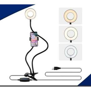 Ring light + suporte celular selfi luminaria abajur youtuber Voltagem: 110v/220v Cor da estrutura: preto Suporte para celular phone holder Você sempre sonhou assistir séries no netflix sem cansar seus braços Com o phone holder você pode. O phone holder é perfeito para aqueles que já se cansaram de segurar o telefone. Navegar pela internet, assistir netflix ou qualquer outra tarefa de telefone intensivo que deixam seus braços cansados depois de um tempo e simplesmente não é confortável por longos períodos de tempo. Este suporte de telefone fica apoiado em seu pescoço para que você obtenha a melhor visão enquanto estiver assistindo ou navegando na internet. Nunca mais tenha braços cansados. Adapta-se a qualquer telefone. Ajustável para obter a melhor posição. As possibilidades são infinitas com o phone holder Suporte giratório A peça do suporte do telefone pode ser ajustada para ficar na melhor posição. Também tem um botão para apertar seu ajuste, dando-lhe a posição mais confortável. Estrutura flexível e ajustável O eixo é totalmente flexível e você pode criar formas incríveis, como suportes ou bastões de selfie com ele. É realmente um braço de soluções que pode se moldar em vários formatos úteis que melhorarão e muito a forma que você utiliza o seu telefone. Compatível com todos os tipos de celulares Informação técnica: Material: abs Dimensões: Suporte pescoço: estendido fechado 60cm Suporte celular: comprimento/aberto: 18cm x comprimento/fechado: 12cm x altura 6,5cm Compatível com aparelhos samsung, , motorola entre outras marcas. Projetado com duplo grampo e o dobro de segurança para seu aparelho. Com o suporte articulado flexível pescoço de ganso, você pode ajustar livremente o melhor ângulo de visão, inclusive gira 360 graus. O grampo de fixação tem abertura máxima 9.4 cm, interior macio com almofada de borracha para fornecer a segurança extra para seu aparelho. Pode ser utilizado na cama, na mesa, na cozinha, no escritório e em qualquer superfície onde possa prender o grampo, ou seja, você irá fixá-lo em qualquer lugar que queira ficar. Dimensões aproximadas: Braço flexível: 70 cm Gancho da mesa abertura máxima: 7.4 cm Predendor celular abertura máxima: 9.4 cm Marca: Não Informado