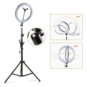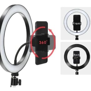 Iluminador ring light de 26 centímetros, desenvolvido para maquiadores, fotógrafos, cinegrafistas e etc, que buscam uma ótima maneira de iluminar com perfeição. Você pode ajustar o ângulo da iluminação por possuir um suporte articulado. É possível controlar as diferentes temperaturas de cores através do controle de ajuste.