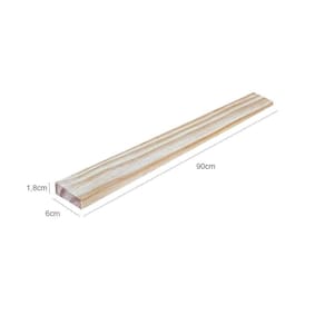 Altura 1,8cm Comprimento 90cm Profundidade 6cm Peso Suportado Depende da finalidade ou do suporte para fixá-la Material Madeira maciça de pinus de reflorestamento. Acabamento Madeira natural crua, lixada e lisa Necessita Montagem? A Cubomob não realiza a instalação do produto Ferramenta Necessárias