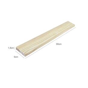 Altura1,8cmComprimento90cmProfundidade9cmPeso SuportadoDepende da finalidade ou do suporte para fixá-laMaterialMadeira maciça de pinus de reflorestamento.AcabamentoMadeira natural crua, lixada e lisaNecessita Montagem?A Cubomob não realiza a instalação do produtoFerramenta Necessárias