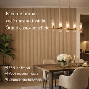 Transforme qualquer ambiente com o visual exclusivo do Ripado Carvalho Bege! Com textura 3D realista e tom neutro sofisticado, ele cria paredes incríveis em poucas horas, sem sujeira, sem obra e sem precisar de profissional.
