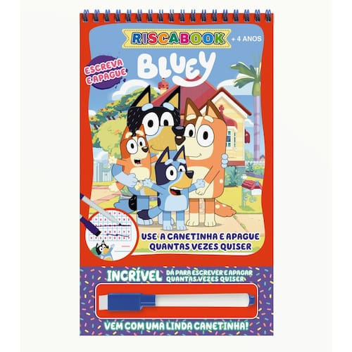 Prepare-se para uma aventura emocionante com o Riscabook Bluey! Explore páginas repletas de diversão e aprendizado com Bluey, Bingo e seus amigos. Com a caneta especial inclusa, você pode desenhar, escrever e apagar, tornando cada página uma nova aventura! Junte-se à Bluey e descubra um mundo de aprendizado e diversão!
