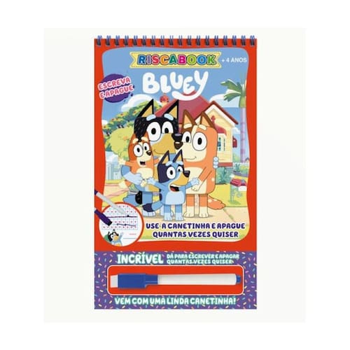 Prepare-se para uma aventura emocionante com o Riscabook Bluey! Explore páginas repletas de diversão e aprendizado com Bluey, Bingo e seus amigos. Com a caneta especial inclusa, você pode desenhar, escrever e apagar, tornando cada página uma nova aventura! Junte-se à Bluey e descubra um mundo de aprendizado e diversão!