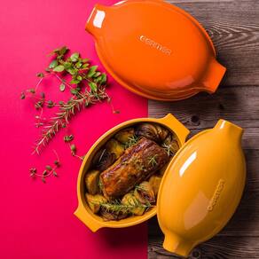 Uma peça única que chegou para surpreender os apaixonados por gastronomia. Os assados em geral não serão mais os mesmos com o Roaster Germer.Com design contemporâneo e elegante, essa assadeira incorpora uma grelha interna e uma tampa com pegas ergonômicas que dão toda segurança no transporte do forno à mesa. Além de ser perfeito para assar aves, já que sua tampa côncava permite o uso com alimentos que tenham uma maior altura, pode ser utilizado para qualquer assado que sua imaginação permitir.