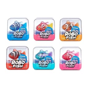 O novo robô fish da robo alive com um splash são os peixinhos de natação robóticos mais icônicos da vida real de todos os tempos solte-os na água e veja-os nadar em 5 direções. Imagens ilustrativas, acompanha 1 peixinho. Código de barras: 7908489402625 código de referência: f0084-8 idade: +3 anos alimentação: bateria inclusa certificado: ce-bri/innac - 02115 - 000 nm 300/2002 medida: 7cm aproximadamente