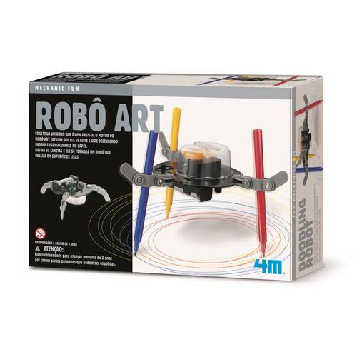 Construa um robô que é um artista, um robô criativo com poderes mecânicos e científicos. Este novo robô futurista pode fazer uma imagem ao vibrar desenhando padrões espetaculares no papel. Retire as canetas e ele se tornará um robô que desliza em superfícies lisas. Poderá utilizar canetas extras estendendo os braços realizando padrões ainda mais coloridos. Você poderia adicionar canetas esferográficas ou lápis de cor em vez de canetas de feltro. Especificações: Marca: 4M - Idade Recomendada: +8 anos. Itens inclusos: um peso, parafusos e porcas, parafusos, dois pinos conectores, uma placa de base, três suportes de braço, suportes de caneta, três ponteiras de braço, fita adesiva, uma capa transparente, três canetas hidrocor, um motor com fios e uma capa de motor e instruções detalhadas. Dimensões aproximadas da caixa: 24 x 17 x 6 cm. ATENÇÃO: Observe atentamente a idade recomendada para o brinquedo. Pode conter partes pequenas que podem ser engolidas e perigosas. As fotos são para ilustrar o produto. Certificado INMETRO CE-BRI-SGS N-0060-80 NM 300-2002. Código do produto: K00-03280. Código de barras EAN: 4893156032805 Ean: 4893156032805