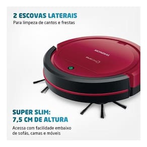 Funcao MOP: Alem de aspirar, passa pano molhado na superficie. Design Super Slim: Com apenas 7,5cm de altura, alcanca areas de dificil acesso. Sistema Antiqueda: Sensores identificam desniveis para evitar quedas. Reservatorio de 140ml: Ideal para sujeiras do dia a dia. Protecao Antirrisco: Evita danos em moveis, pisos e paredes. Eficiencia em Diferentes Pisos: Limpa madeira, carpetes e pisos frios. Potencia de 30W e Autonomia de 90 Minutos: Alta performance durante todo o processo de limpeza. Indicador de Funcionamento: Lampada piloto mostra o status da bateria. Bivolt: Funciona tanto em 127V quanto em 220V. Garantia de Um Ano: Confianca Mondial.