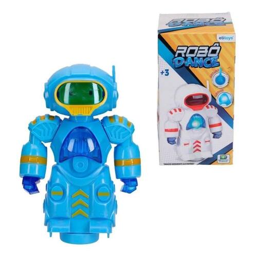 - Material: PP - Cor: Azul e Branco - Tipo de Embalagem: Caixa Litografada - Marca: Etitoys - Origem: China - Robô com Sensor, som e luz. - Utiliza 3 pilhas AAA não inclusas.