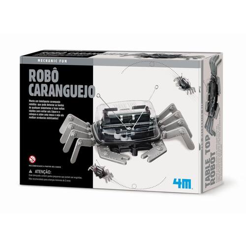 Monte um inteligente brinquedo educativo robótico. Este caranguejo pode detectar as bordas de qualquer plataforma e fazer voltas rápidas e não cair. Ligue-o e coloque na mesa e assista-o a realizar acrobacias deslumbrantes. Este kit vem com manual de instruções em português onde a criança realiza seu projeto científico e tem ao final um brinquedo inteligente criado por ela. Diversão e ciência juntas. A criança tem oportunidade de se envolver em um projeto científico e ser parte dele, criando um brinquedo educativo muito divertido. Especificações: Marca: 4M - Idade Recomendada: +8 anos.