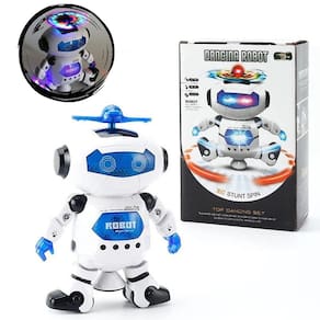 Explore a diversão com nosso robô dançante para crianças este modelo vibrante e animado é uma explosão de luzes e música, pronto para rodar em 360º enquanto dança ao ritmo de suas melodias favoritas. Com membros articulados, ele proporciona uma experiência interativa e empolgante para crianças acima de 18 meses. Leve e compacto, medindo 20 cm de comprimento e pesando apenas 0,350 kg, é fácil de transportar para qualquer lugar. Não inclui as 3 pilhas aa 1,5v necessárias para ativar essa festa de diversão. Feito com plástico resistente, garantindo durabilidade e segurança durante as brincadeiras. Deixe seu pequeno entrar nessa dança emocionante com nosso robô dançante