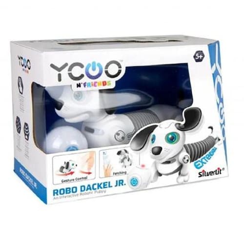 Para as crianças que adoram robô e pet, esse brinquedo é ideal! O Robô Dackel Jr. Cachorrinho é um brinquedo em formato de cachorro que possui olhos em LED, um sensor de toque que o faz reagir ao passar a mão na cabeça, tem controle de gestos, estica até 26cm de comprimento e segue a bola.Idade recomendada:5+;Composição/Material:Plastico;Brinquedo depende de pilhas:Sim;Brinquedo com luz:Sim;Brinquedo com som:Sim;Dimensões da embalagem:20x20x15 cm;