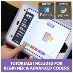 O QUE ESTÁ INCLUÍDO PYXEL A Coders Best Friend, bateria recarregável integrada, cabo USB C, Code Activator, guia e UI integrada interface do usuário com duas linguagens de programação Blockly e Python