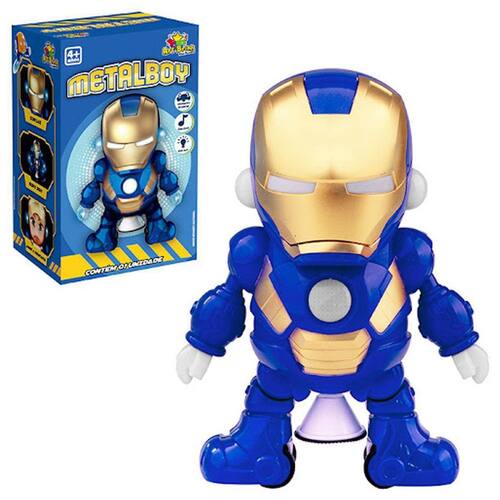 Rinquedo Infantil Boneco Robô Herói Dançante Metalboy Movimentos de Dança Luz e Som - Art Brink Robô Herói Dançarino C/som E Luz Os brinquedos eletrônicos educativos estimulam o contato com as cores, a audição e a concentração. O Robô Metal Boy, seguindo essa função, emite sons, mexe as pernas e os braços e gira. É programado com vários movimentos e danças iradas. É um brinquedo inovador e divertido que veio para agradar uma nova geração de crianças. É interativo, e seus movimentos irão deixar todos surpresos. A qualidade não fica de fora da brincadeira e seu material é muito resistente e com alta qualidade. A segurança também é garantida: o brinquedo é fabricado com bordas arredondadas, evitando, assim, acidentes. O produto é uma excelente opção de presente para crianças de várias idades. Especificações: Composição: Plástico ABS e Metal. Medidas: 19 x 16,5 x 10,5 cm Alimentação: 3 Pilhas AA 1,5v Não Inclusas Selo do INMETRO - 005077/2019 Peso: 0,350kg Conteúdo da embalagem: - 01 - Robô