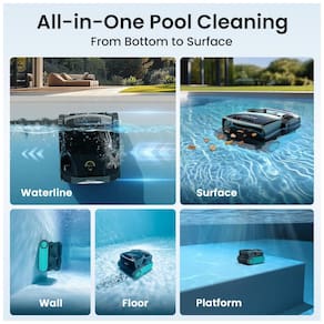 Robô de limpeza de piscina com função skimmer, sucção de 8502 GPH, filtração ultrafina de até 50 mícrons, estacionamento inteligente na superfície, navegação autônoma, materiais resistentes à corrosão, compatível com piscinas enterradas de até 150 m².Tipo de coletor